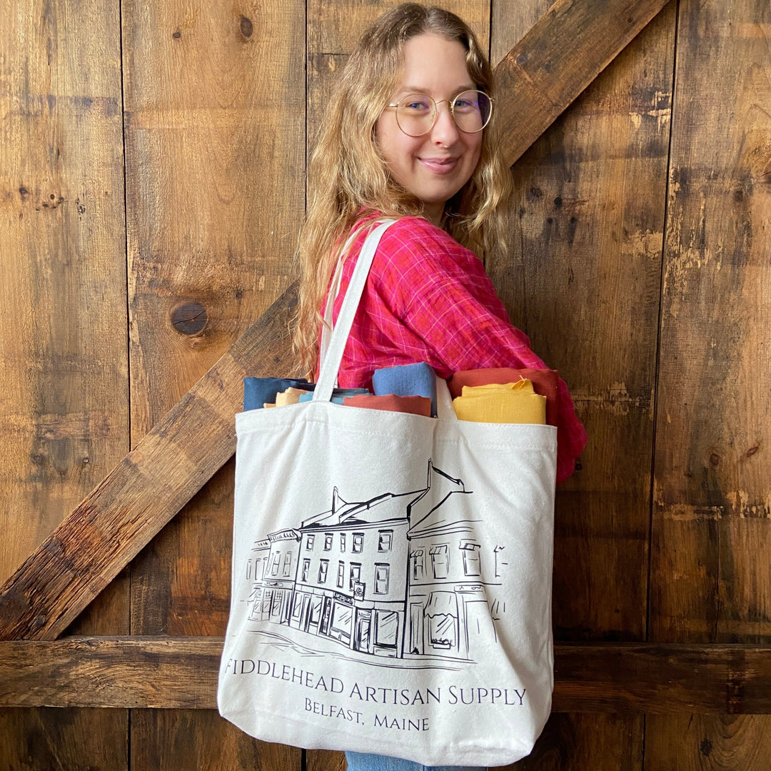 Share your love for Fiddlehead Artisan Supply everywhere you go! Whether for your next project, a trip to the farmers' market, or just a catch all for life's odds and ends, this 100% cotton bag is an A+ companion for all your toting around needs.