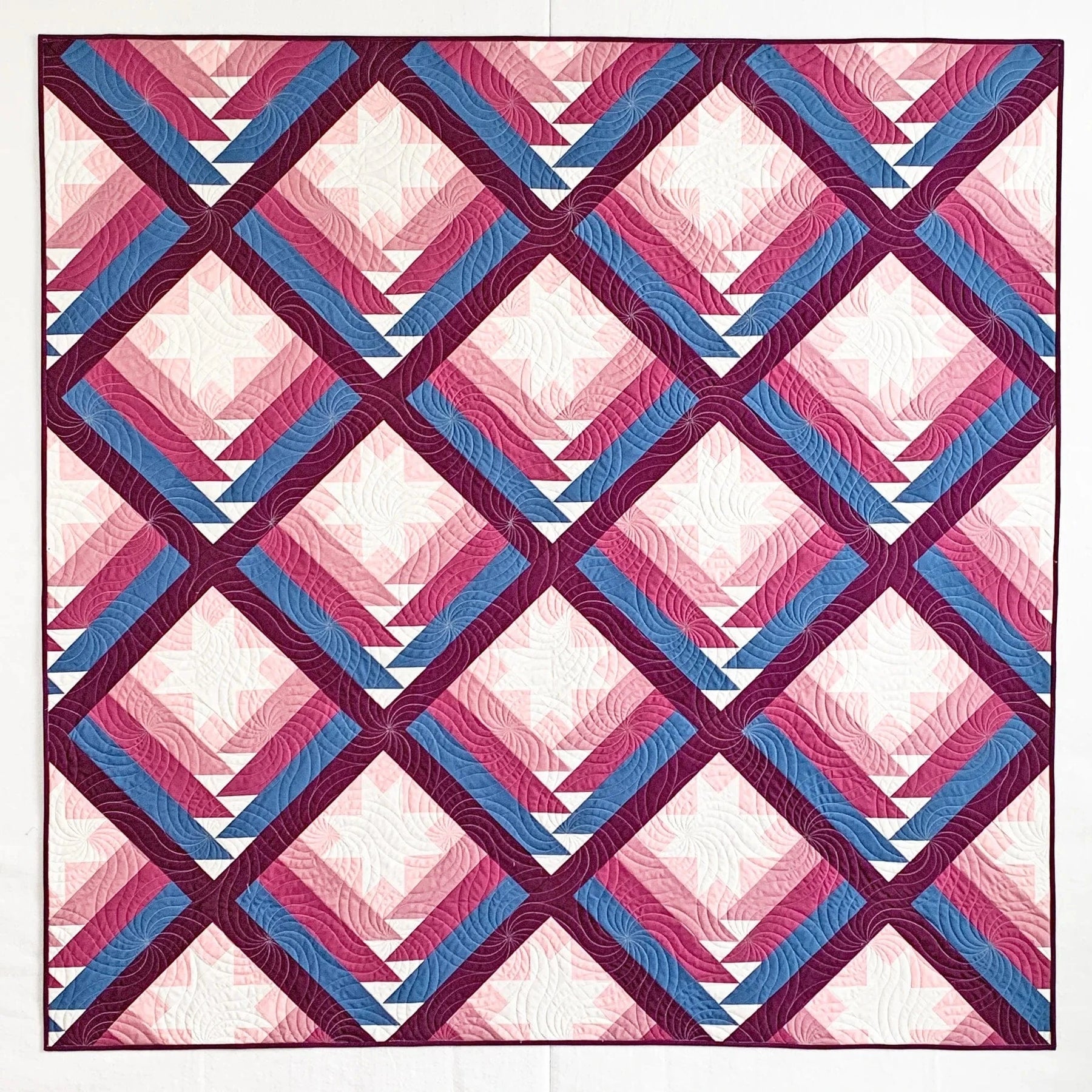 The Mountain Valley quilt pattern was inspired by Julie Burton of Running Stitch Quilt's time living in El Paso, Texas and the beauty of the sunsets in the Franklin Mountains. The way the blocks play together creates a very dynamic effect!