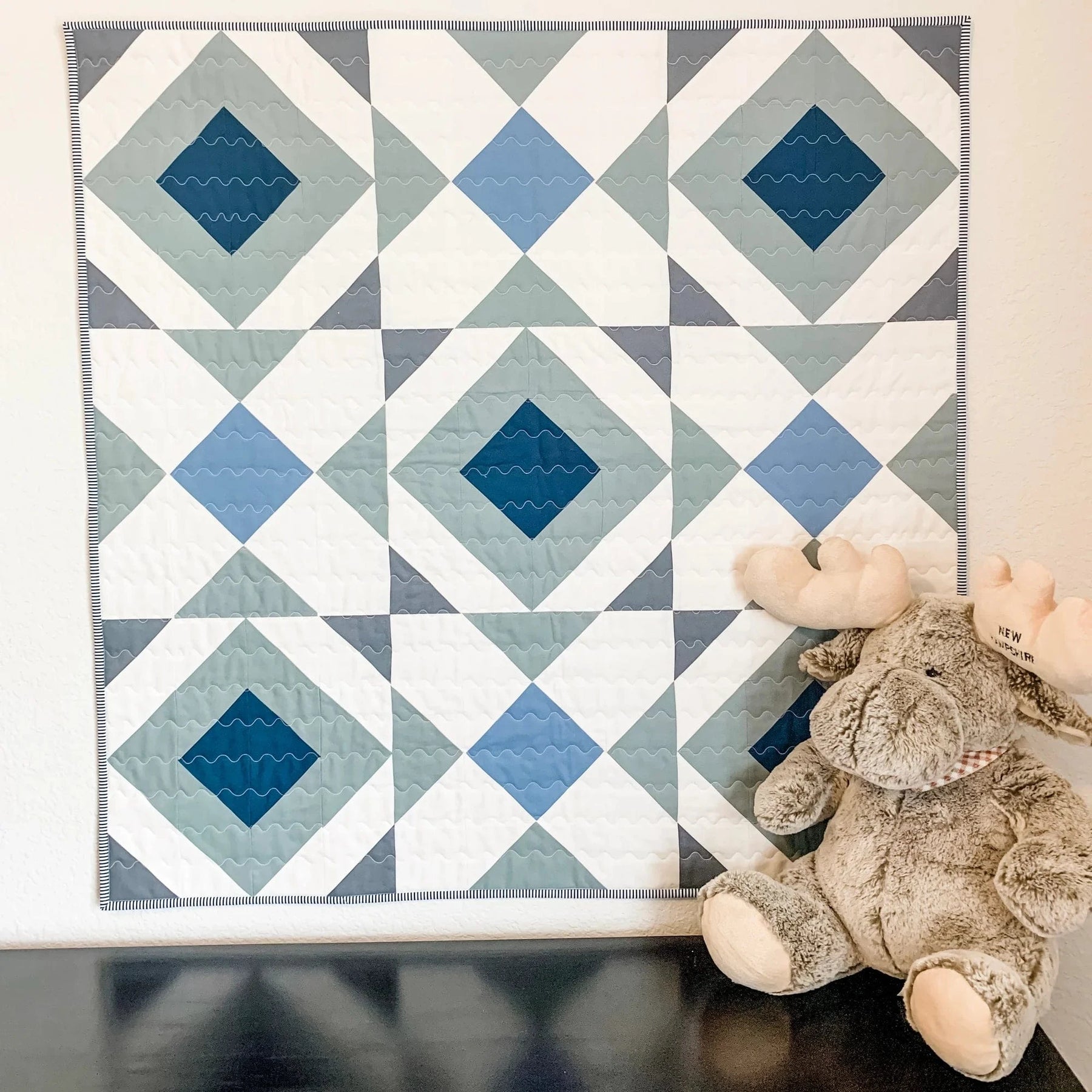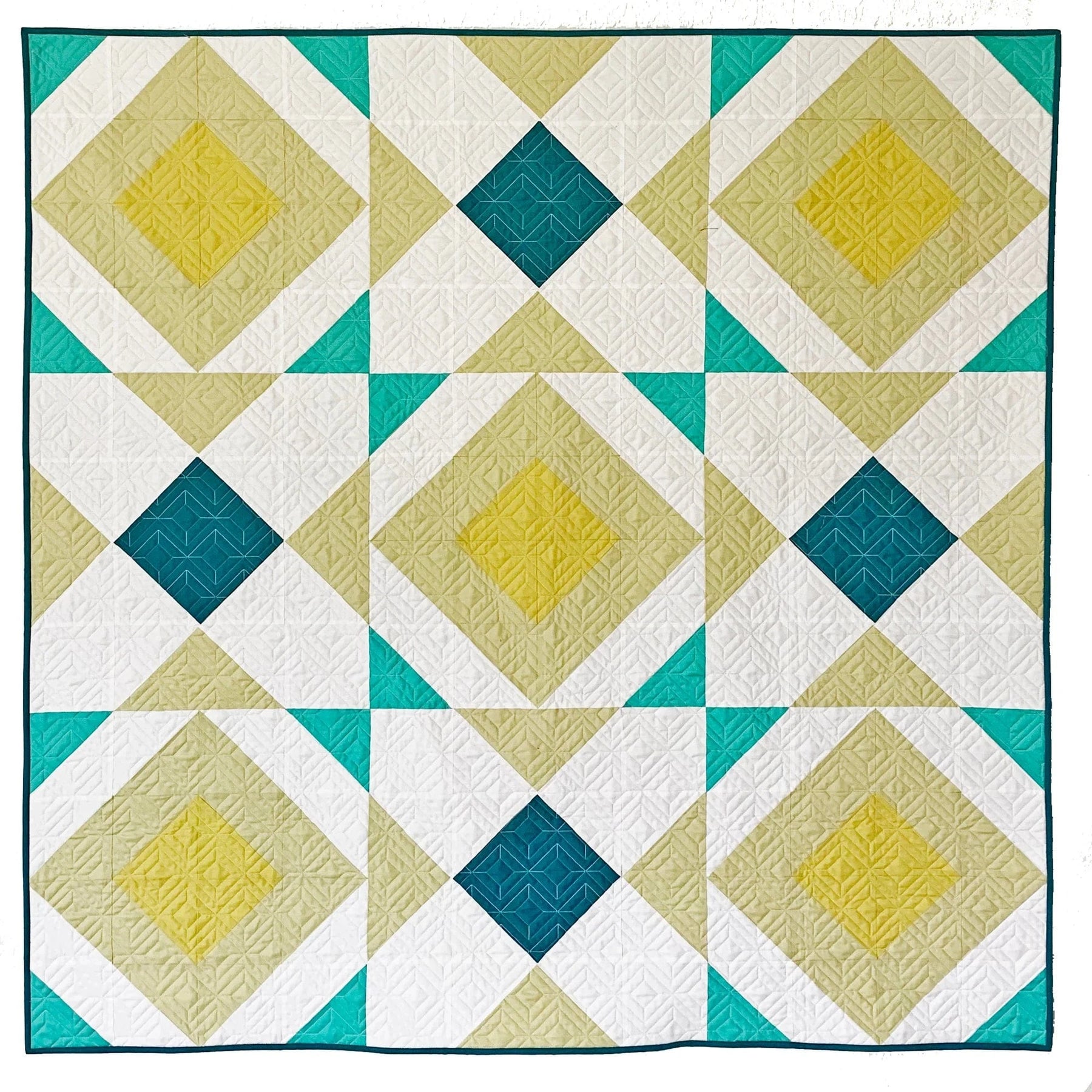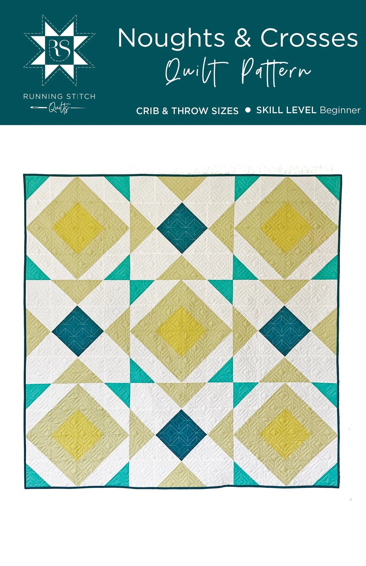 The Noughts and Crosses quilt pattern by Running Stitch Quilts is a modern, geometric pattern perfect for featuring a bold, fun print or playing with your favorite 4 color combination.